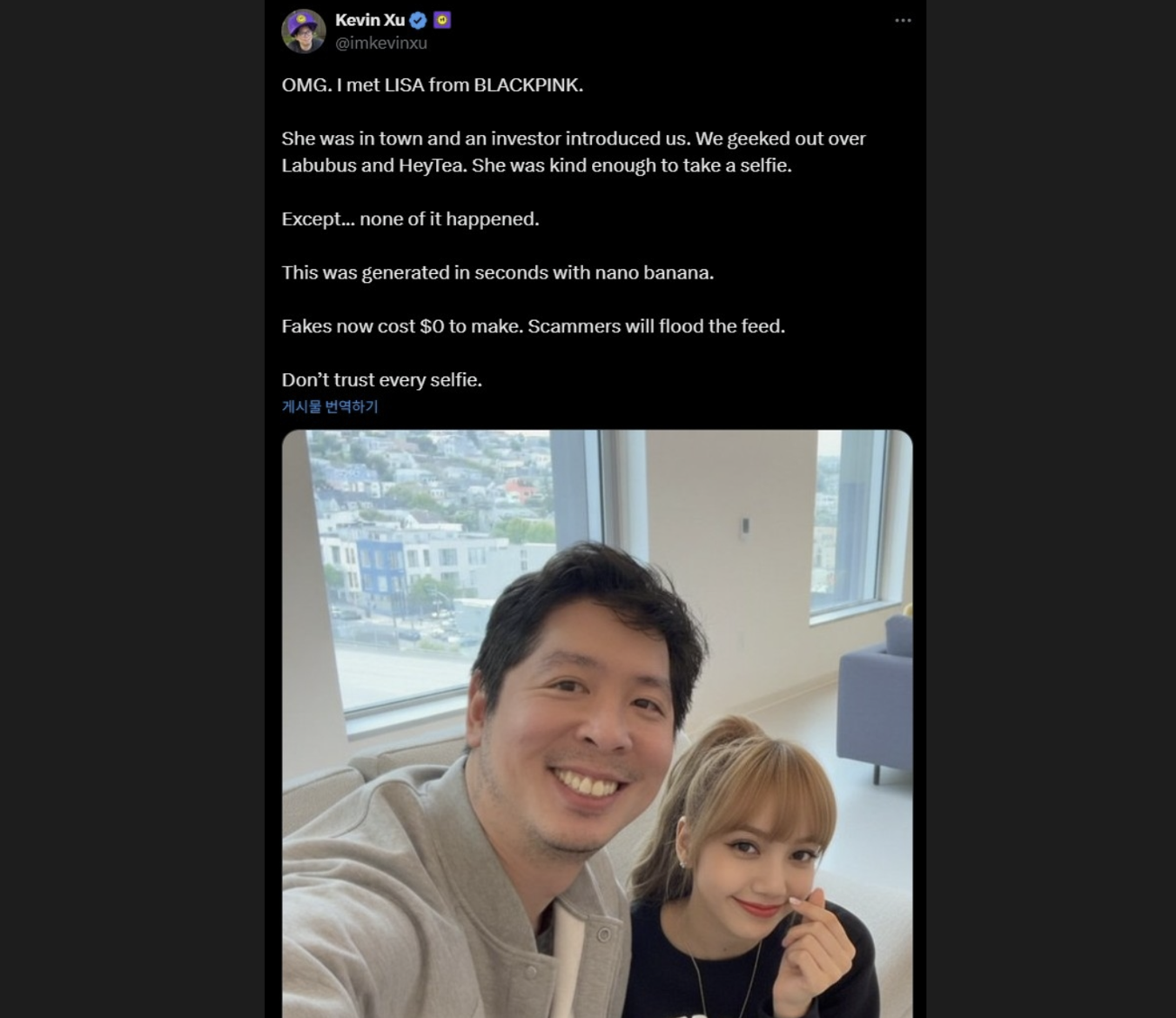 사실 케빈 쉬우의 ‘블랙핑크 리사 AI 사진’이 이슈가 되기 전부터,