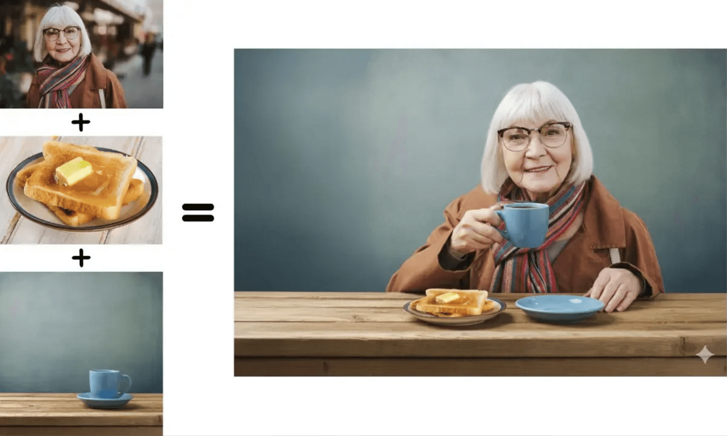 나노바나나는 단순히 이미지를 '수정'하는 수준을 넘어, 서로 다른 이미지를